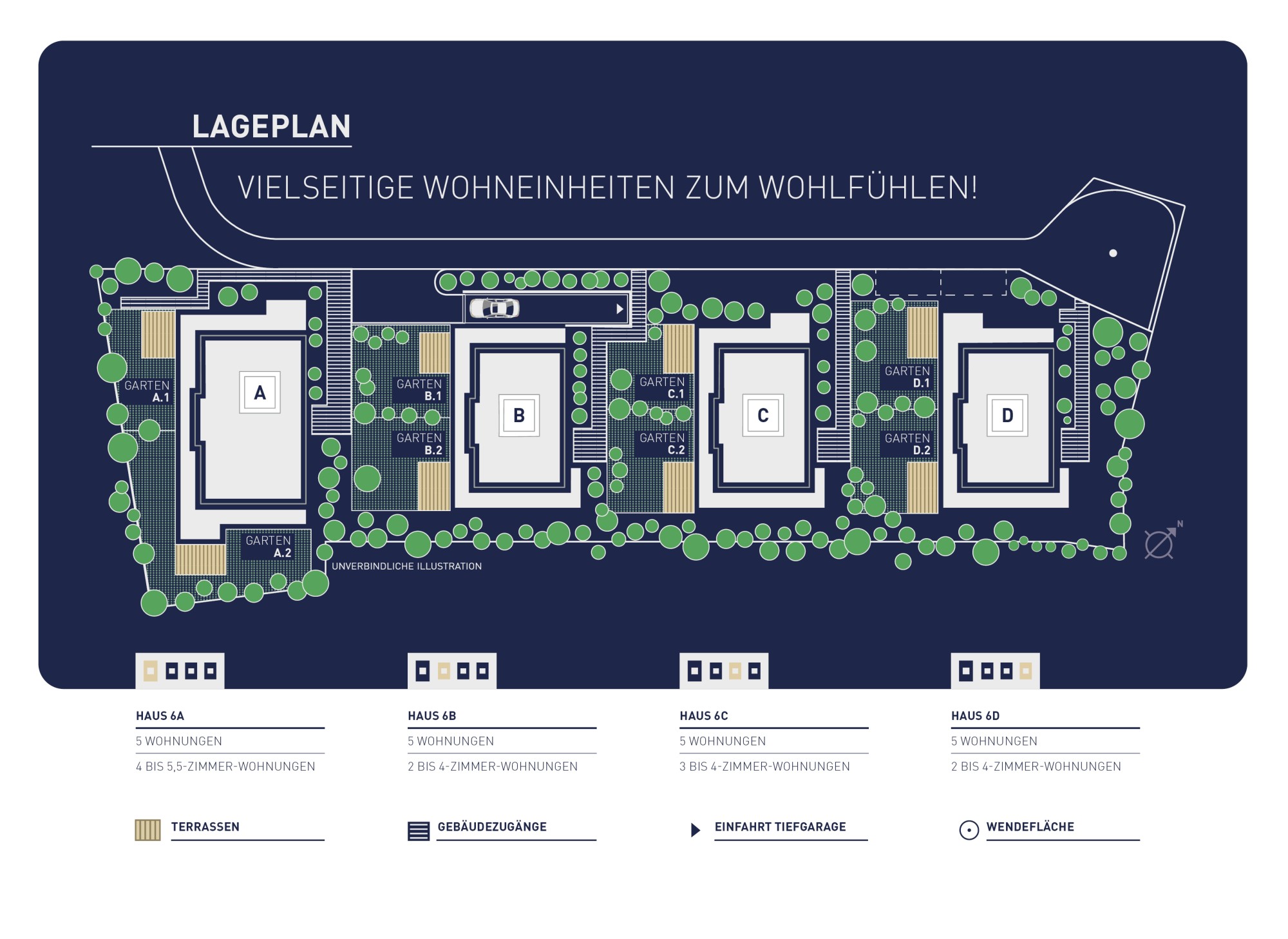 Das Neubauvorhaben umfasst insgesamt 4 Häuser mit jeweils 5 Wohnungen und befindet sich derzeit in der Fertigstellung.