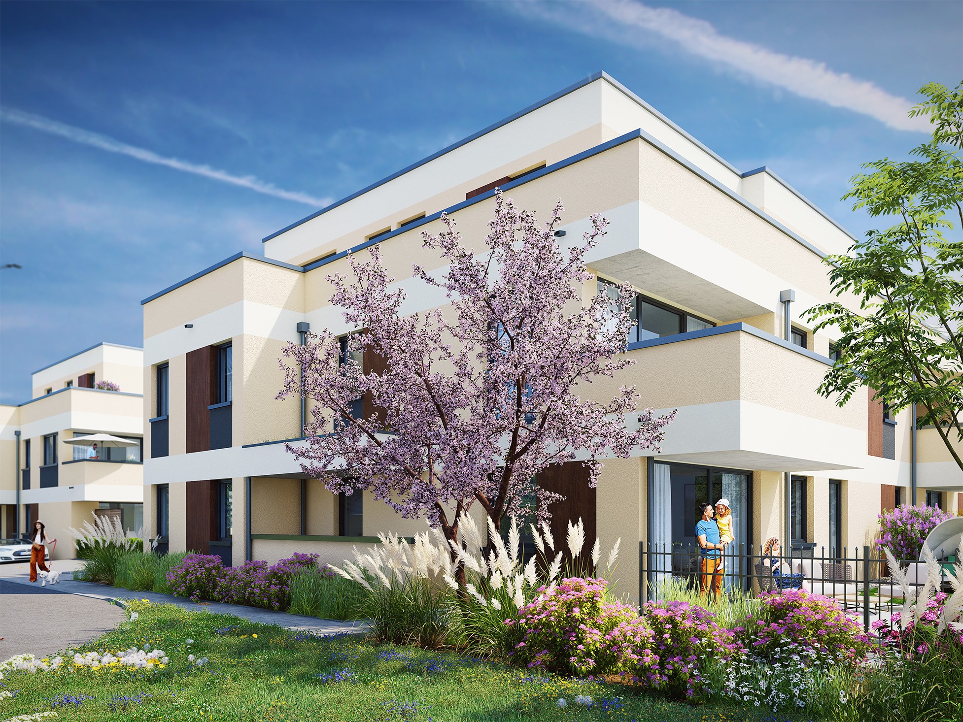 Das Neubauvorhaben umfasst insgesamt 4 Häuser mit jeweils 5 Wohnungen und befindet sich derzeit in der Fertigstellung.